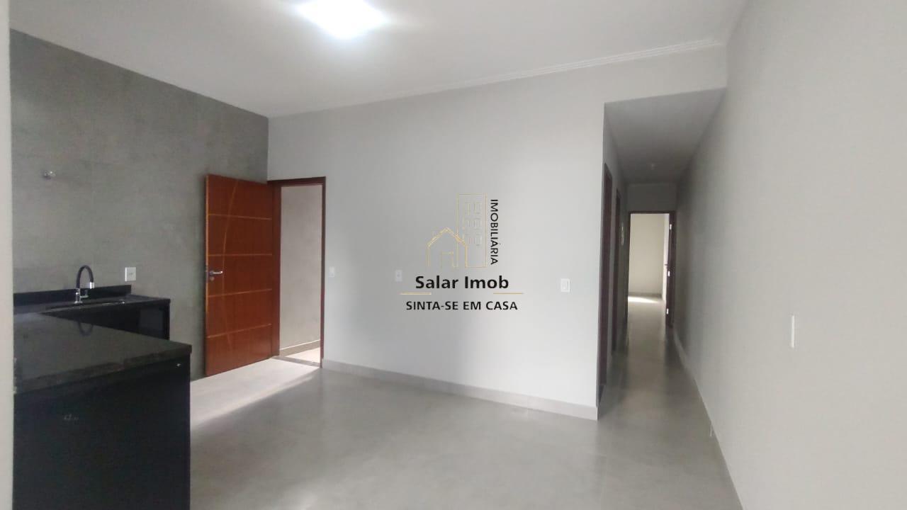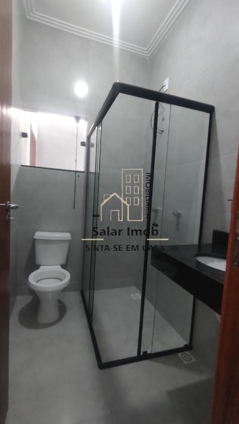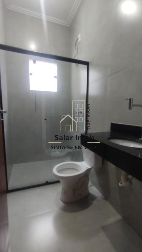 Casa linear composta por 2 Quartos amplos sendo 01 Suíte , sala estar e jantar com cozinha com armários instalados na pia, 1 banheiro social e uma área de serviço coberta.